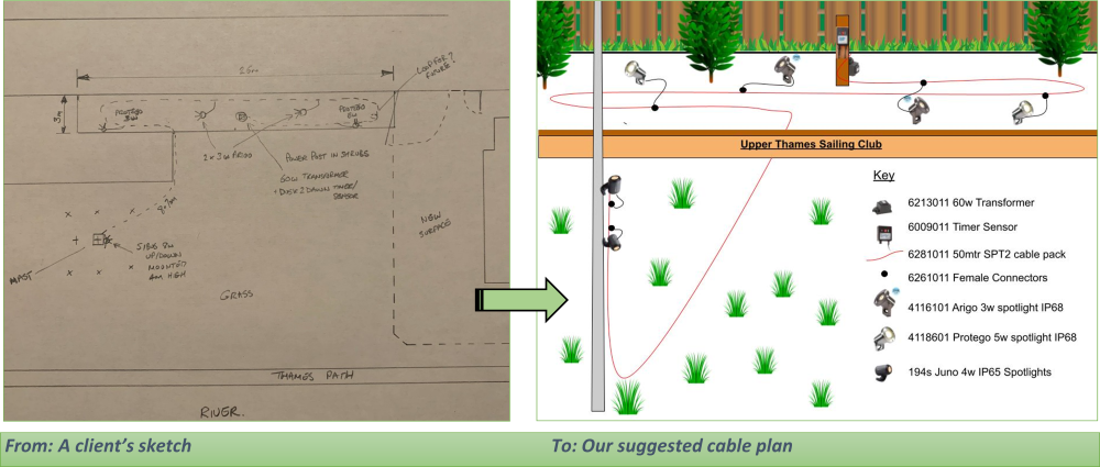 If you would like to use our free garden lighting cable design service, please email us onThis email address is being protected from spambots. You need JavaScript enabled to view it. or phone us on 01276 903228.